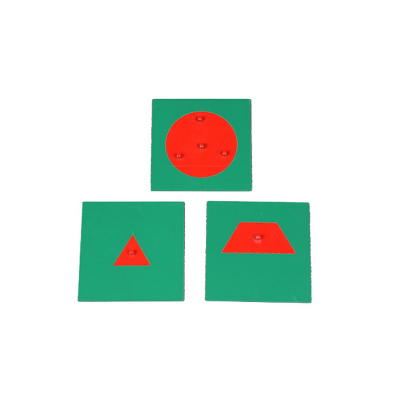 The metal geometry board includes 3 red metal insets with green metal frames showing different geometry progressively. Each green metal frame measures 12.5×12.5cm, allowing children to understand geometric concepts through tactile exploration and visual learning.