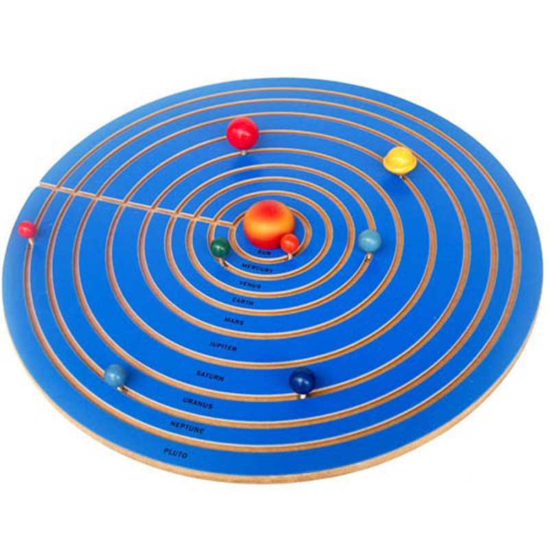 Solar system new consists of 9 planets and is made of wood. This Montessori material toy may help children learn number of planets orbiting the sun and correct positions of which planets are closer to sun. A very good Montessori educational equipment for children aged 3-14 years. Following Maria Montessori's principle: "I listen it, but I will forget it later; I see it, I will remember it; I do it, I understand it."