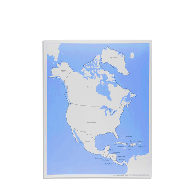 The Control Maps-Labeled are used first to help children identify each continent, country, or state by reading its name. This labeled map is specifically designed to be used with the Puzzle Map of North America, providing a reference for geography learning.