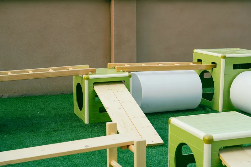 Absolutely. It is a highly effective develop motor skills play equipment system. Navigating the various heights and unstable surfaces (like cylinders) helps improve proprioception, balance, and physical confidence in toddlers and preschoolers.
