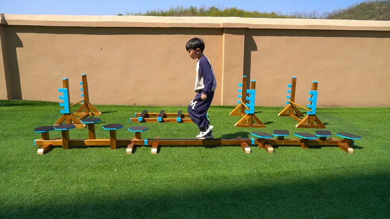This modular system allows children to navigate various challenges, including stepping stones, hurdles, and balance bridges. It is scientifically designed to support:- Gross Motor Skills: Encourages active movement and physical strength.