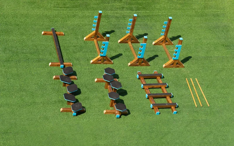 | Components | 10 Pieces (Balance beams, Stepping stones, Hurdles, Bridges) |