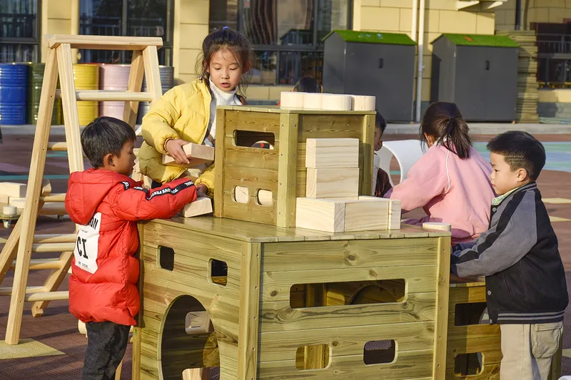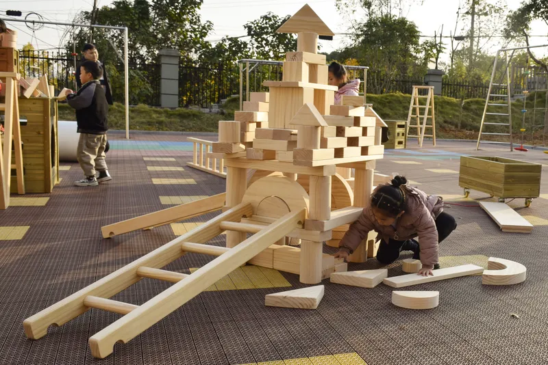 The set includes 656 building blocks made from premium imported New Zealand natural wood (natural finish, no paint) and 50 pieces of climbing equipment made from ACQ Finnish anti-corrosion wood and PP materials. It is designed to be durable for daily school use.