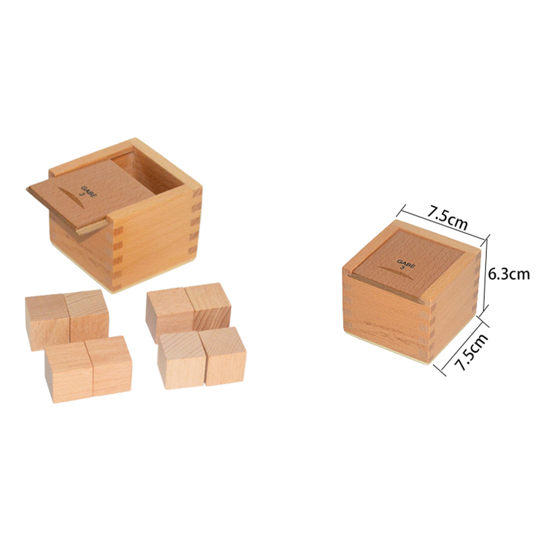 The set includes 8 pieces bricks (each 2.5*2.5*2.5cm) and a beechwood storage box. Very easy to put in and get out, perfect for learning arithmetic, fractions, and mathematical concepts.