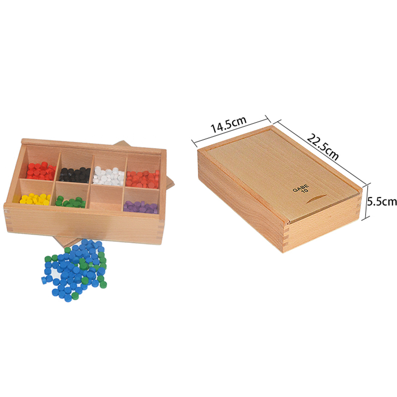 The set includes 480 pieces total with diameter 1.0cm in 8 colors: red, blue, green, yellow, purple, orange, white, black. Each color contains 60 pieces. Comes with high quality beech wood storage box.