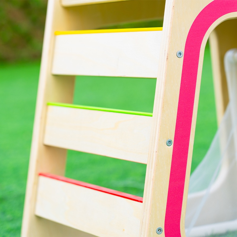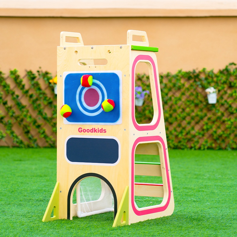 This Multi-Sport Ladder is designed for infants and toddlers with adult supervision. Perfect for developing climbing skills, coordination, and physical strength through structured play activities.
