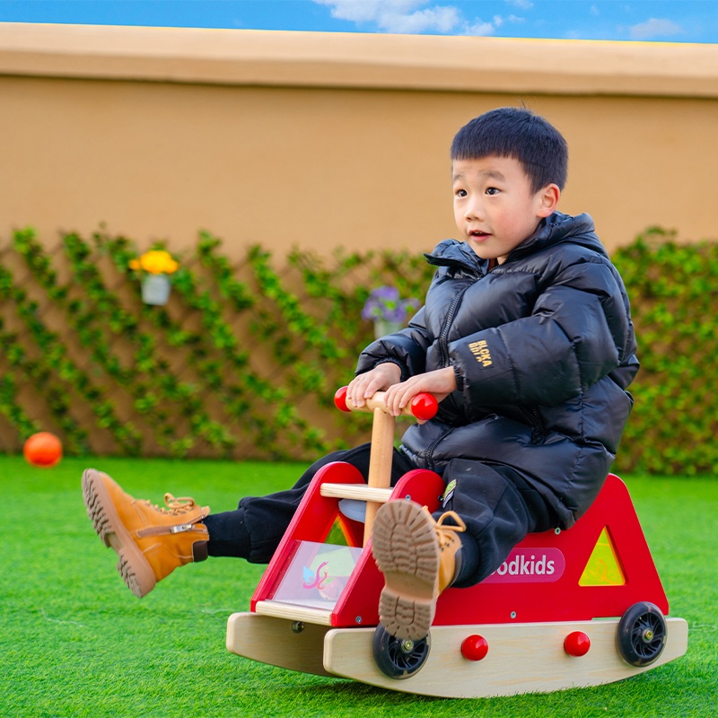 This rocking wagon is designed for infants and toddlers with adult supervision. Perfect for developing balance, coordination, and sensory exploration through safe rocking motion activities.