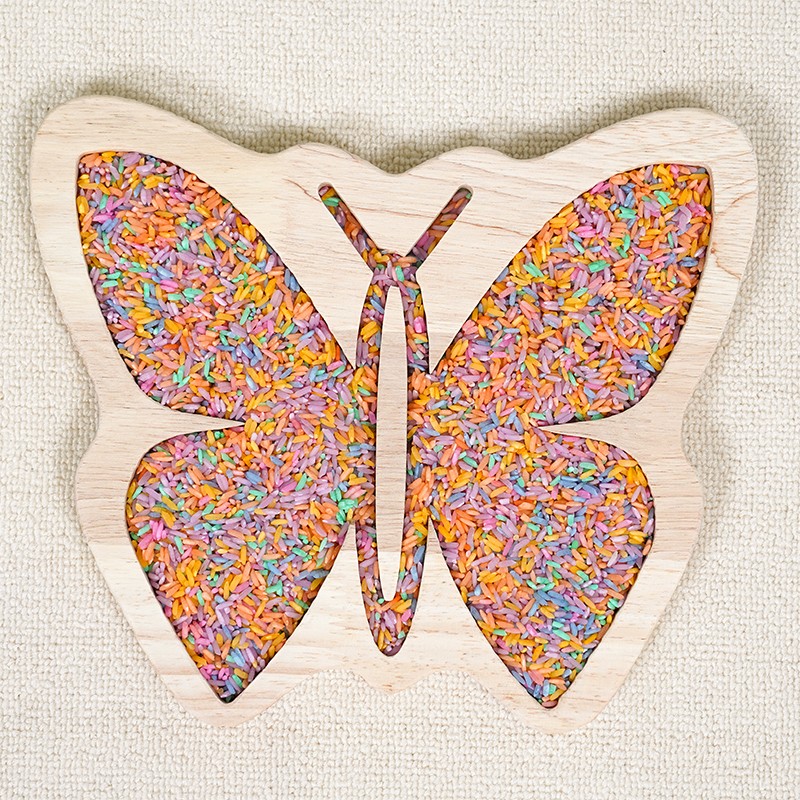 The disk encourages tactile exploration, nature pattern recognition, creative expression, and fine motor skill development. Butterfly-themed design introduces natural world concepts while supporting sensory learning experiences.