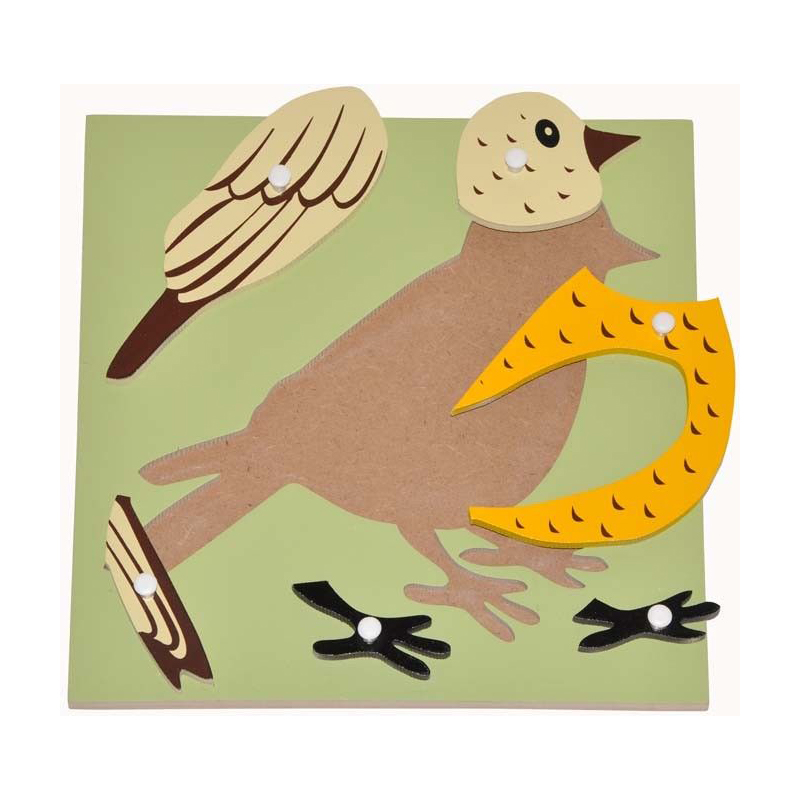 Following Montessori principles of 'I do it, I understand it', this puzzle allows children to explore and identify different parts of a bird through hands-on manipulation, promoting self-discovery and animal understanding.