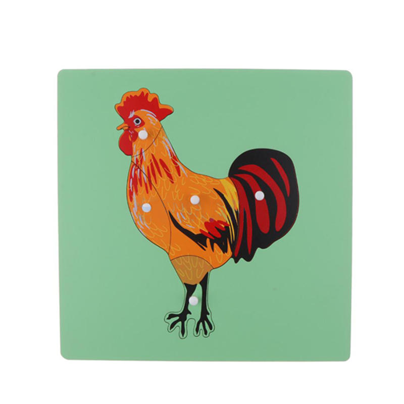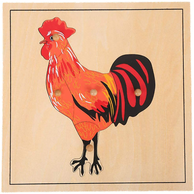 Following Montessori principles of 'I do it, I understand it', this puzzle allows children to explore and identify different parts of a rooster through hands-on manipulation, promoting self-discovery and biological understanding.