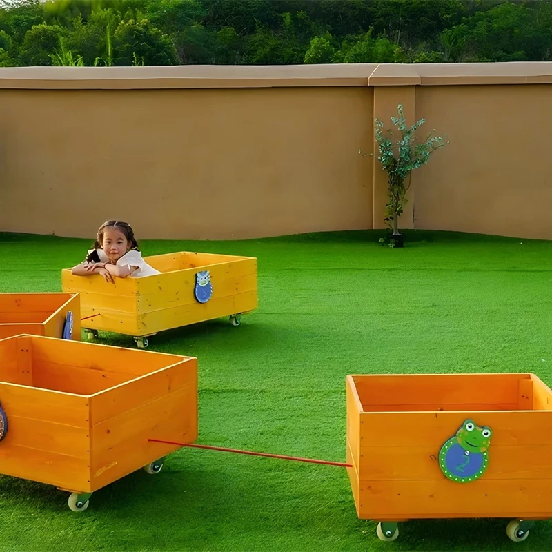 Yes, the Power Train features weather-resistant Finnish pine with outdoor clear lacquer finish, making it perfect for outdoor play. The anti-corrosion treatment ensures long-lasting durability in various weather conditions.
