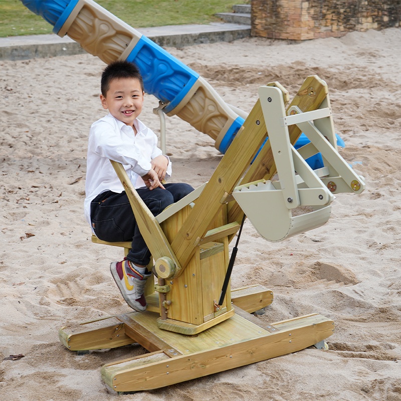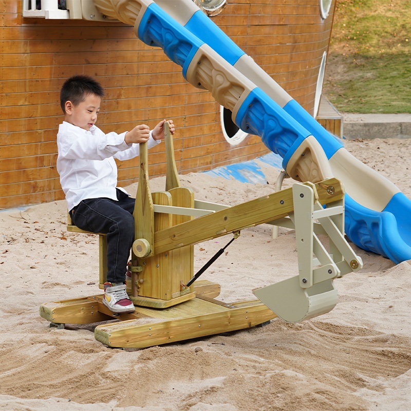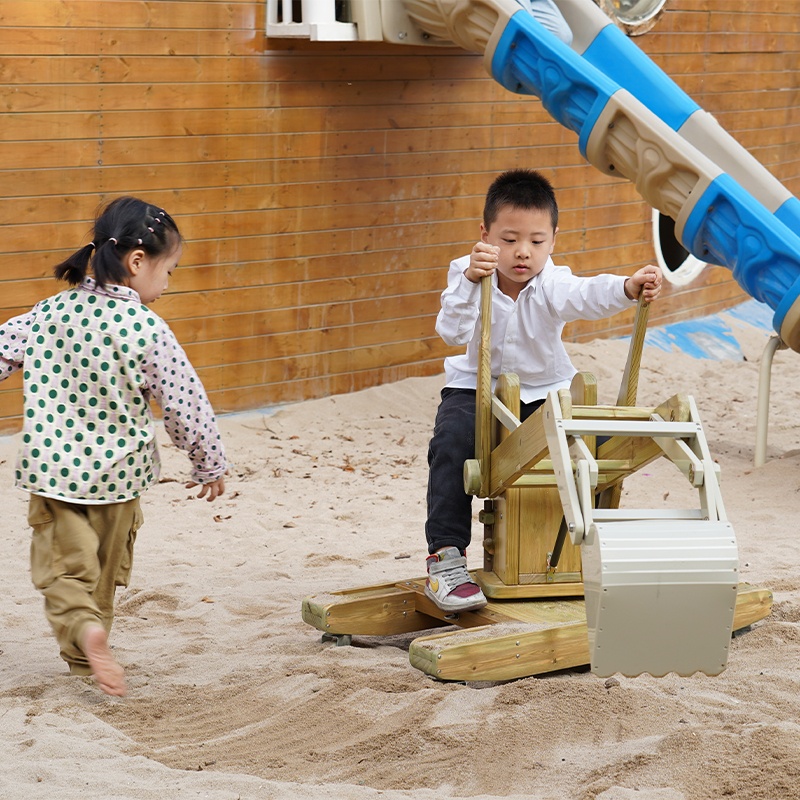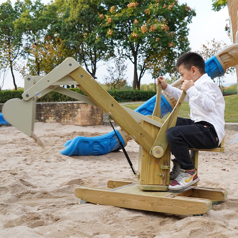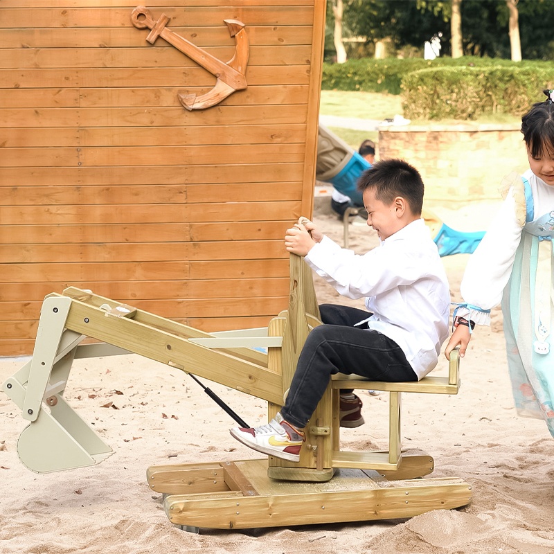 Made from anticorrosive Finnish pine varnish and durable PP materials. Features weather-resistant finish suitable for outdoor use with functional moving parts for realistic excavation play.