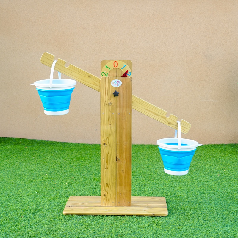 The Sand Play Balance measures 100×28×93cm and weighs 6.1kg. Compact yet sturdy design perfect for playground integration and easy maintenance.