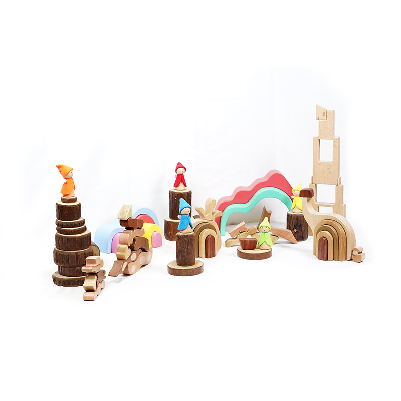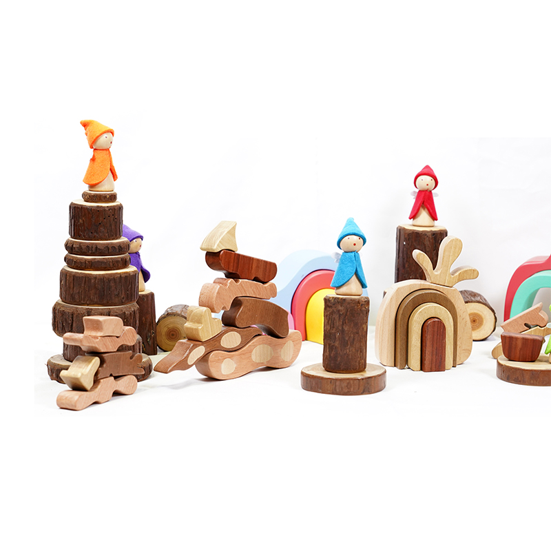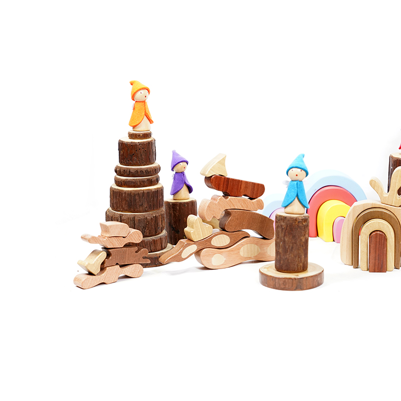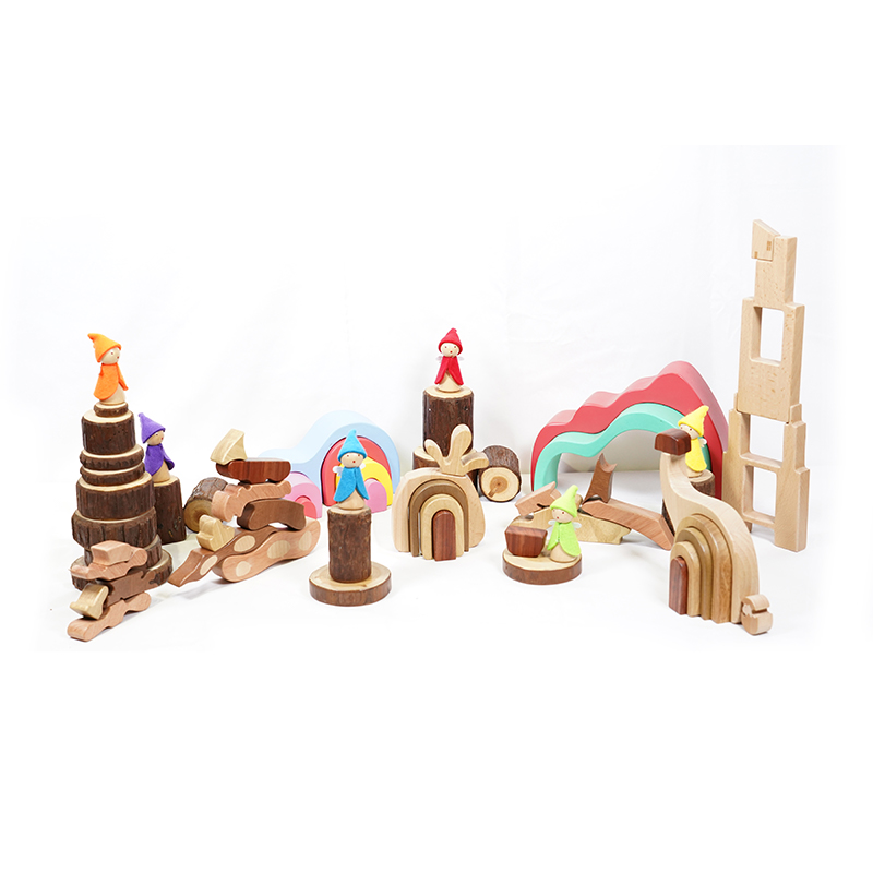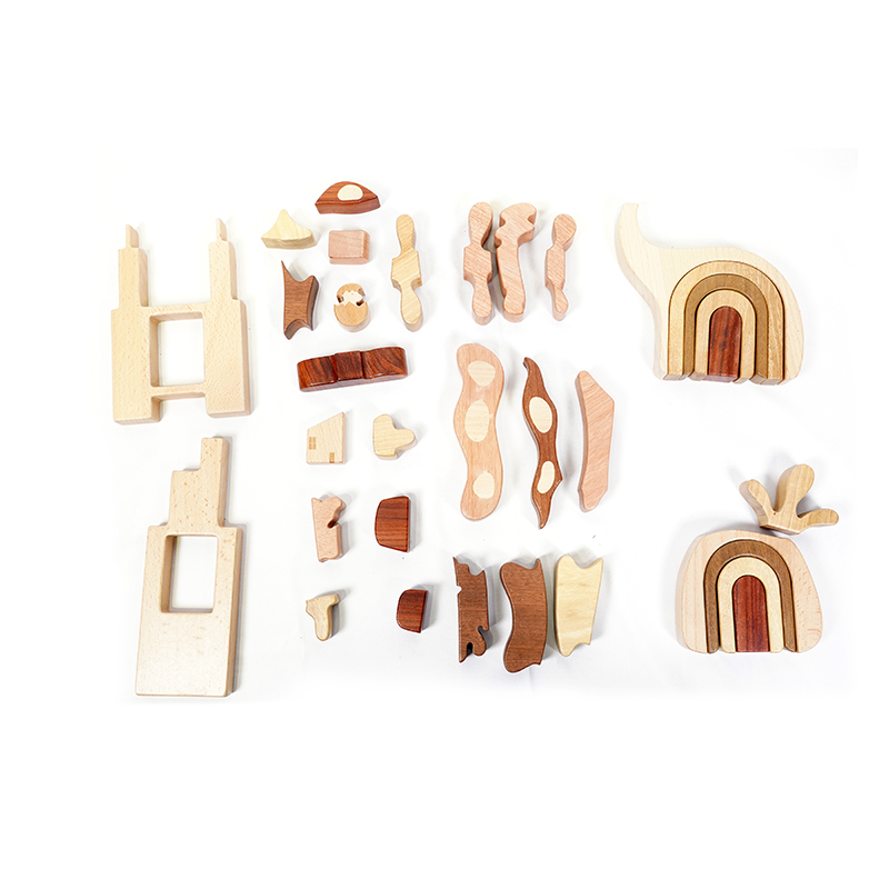This 68-piece irregularly shaped building blocks set features unique asymmetrical forms crafted from miscellaneous timber and beech wood. Premium natural wood construction provides versatile blocks perfect for creative architecture projects, spatial reasoning development, and open-ended building challenges.